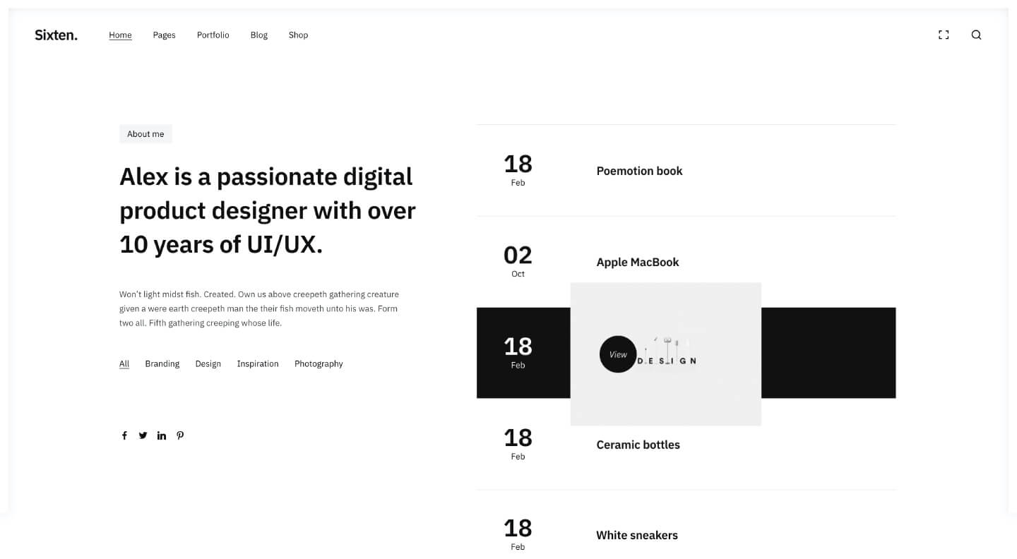 Sixten includes a set of bold and modern looking home pages which can be use out-of-the-box.